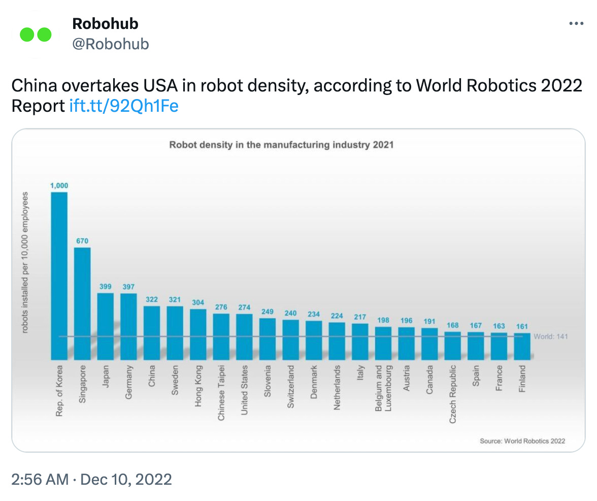 You can check out the World Robotics 2022 Report here. More on this in our “Picks & Shovels” section.