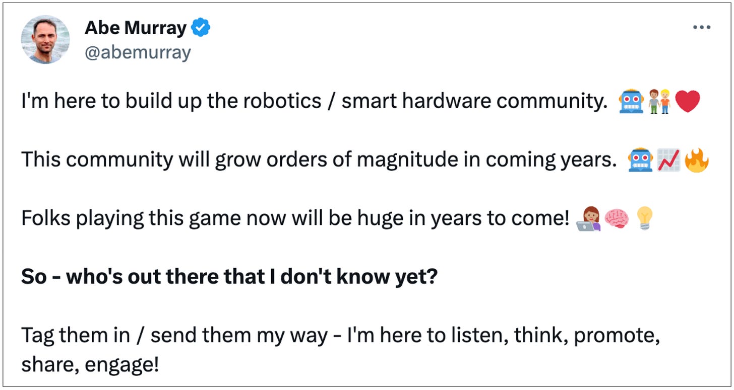 Let’s build our smart hardware community! I’ve been posting and engaging on this topic and meeting great folks on LinkedIn and Twitter. We’re building fast - amazing energy as folks like Cameron at Rangeview rebuild American manufacturing while others ask how to create more creators and Viam Robotics builds a platform to unleash them.